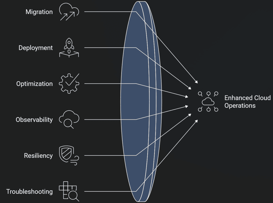 The idea is this: rather than humans manually correlating signals and triaging issues, AI-powered agents are embedded directly into the operational workflow. They don't just surface insights, they translate them into coordinated, governed action across the full cloud lifecycle.